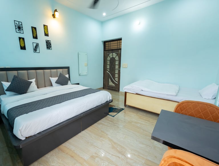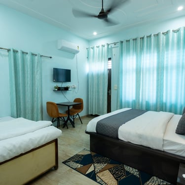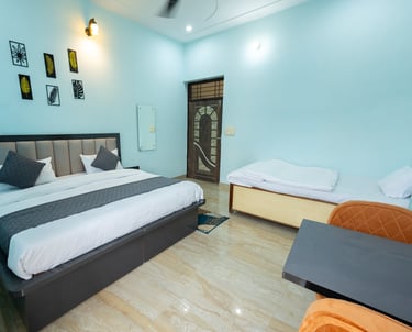 At Taran Bliss Homestay, each room is thoughtfully designed to offer a perfect blend of comfort and style. Whether you're visiting for a short trip or a relaxing holiday, our rooms provide a peaceful retreat after a day of exploring Agra’s treasures.